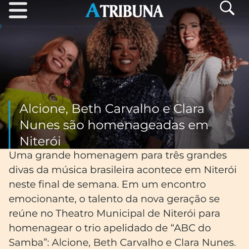 O projeto “ABC do Samba” é um tributo às maiores referências femininas da música popular brasileira: Alcione, Beth Carvalho e Clara Nunes. Mais do que um show, é um ato de reverência à ancestralidade do samba e à força da mulher na cultura nacional.
